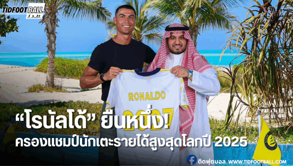 นิตยสาร ฟอร์บส์ (Forbes) สื่อการเงินชื่อดังระดับโลกจากสหรัฐฯ เผยอันดับนักฟุตบอลที่ทำรายได้สูงสุดประจำปี 2025 โดยมีชื่อของ คริสเตียโน่ โรนัลโด้ ซูเปอร์สตาร์ชาวโปรตุเกสจากสโมสร อัล นาสเซอร์ ในซาอุดีอาระเบีย ครองตำแหน่งเบอร์หนึ่งของโลกอีกครั้ง ด้วยรายได้รวมสูงถึง 280 ล้านดอลลาร์สหรัฐ หรือประมาณ 9,128 ล้านบาท